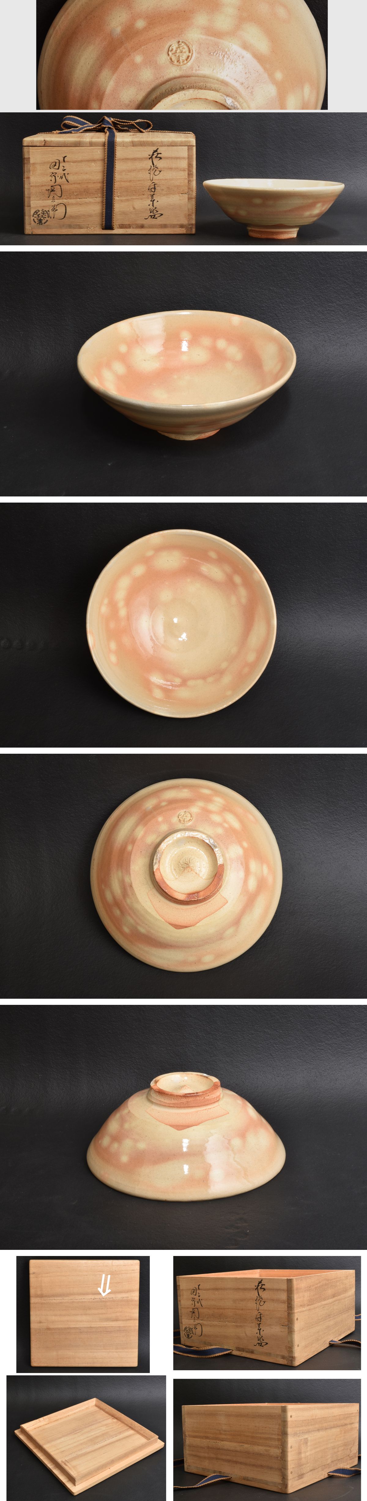 5791 十二代田原陶兵衛 萩焼茶碗 無キズ 共箱 收藏
