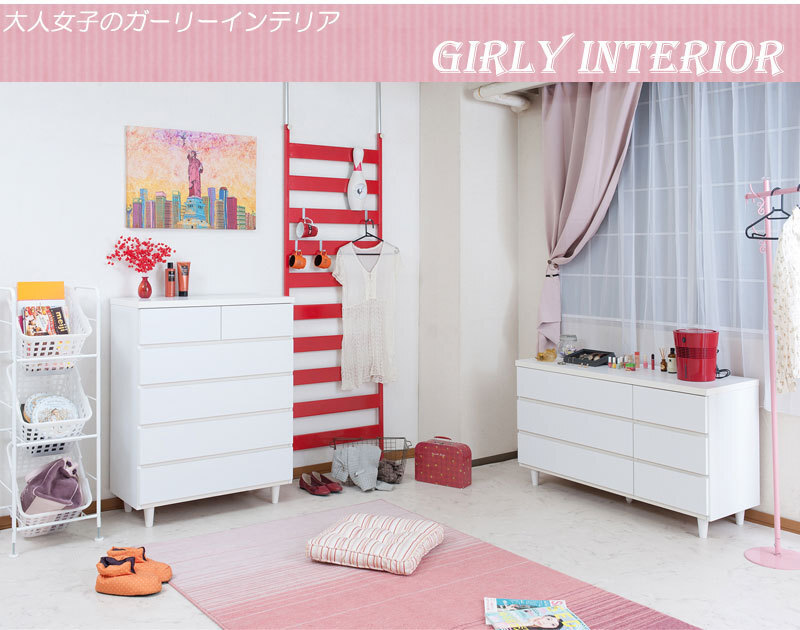 ◇直線的なデザインに円錐型の木製脚がマッチしたホワイトチェスト。収納力とデザイン性のバランスを考えた有能チェスト。モダンシーンから可愛い系まで男女問わず様々な場面で活躍します。