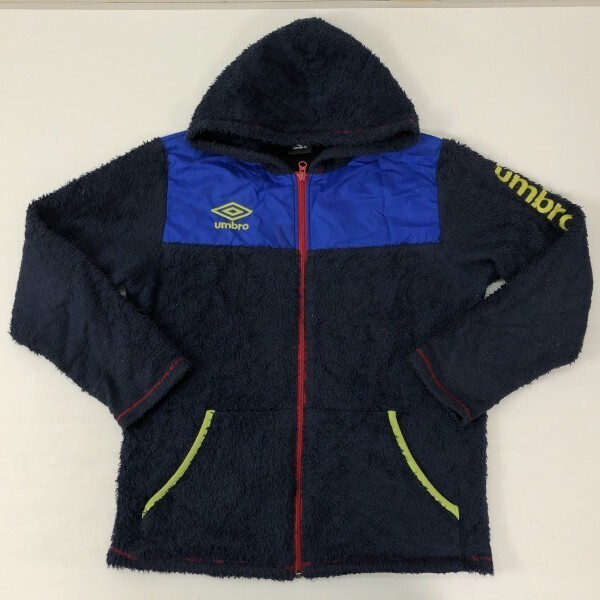 Umbro アンブロ スポーツ トレーニング プラクティス 古着 ボアフリース パーカー ジャケット キッズ ポリエステル100% 160 紺 收藏