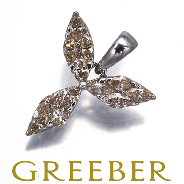 ブラウンダイヤ ダイヤモンド 1.20ct マーキスカット ペンダントトップ K18WG GENJ 收藏