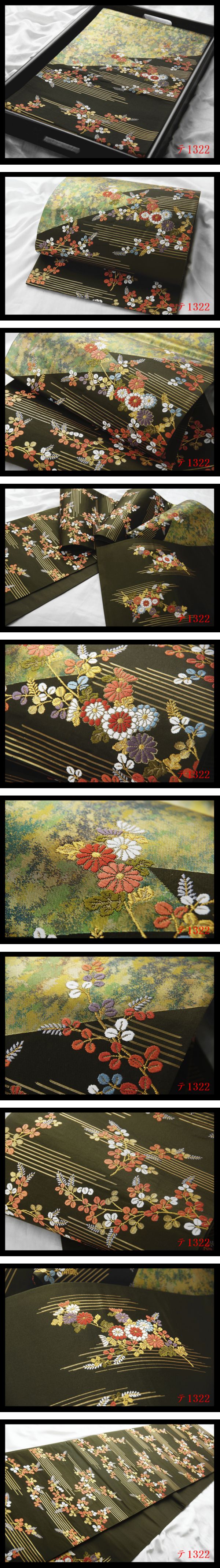蔵【テ1322】西陣逸品 錦織 菊萩紋 海松色地 華やぎの品格 正絹純金糸六通高級美術袋帯 新品同様◇検◇簪着物名古屋帯和装小物帯締め 收藏