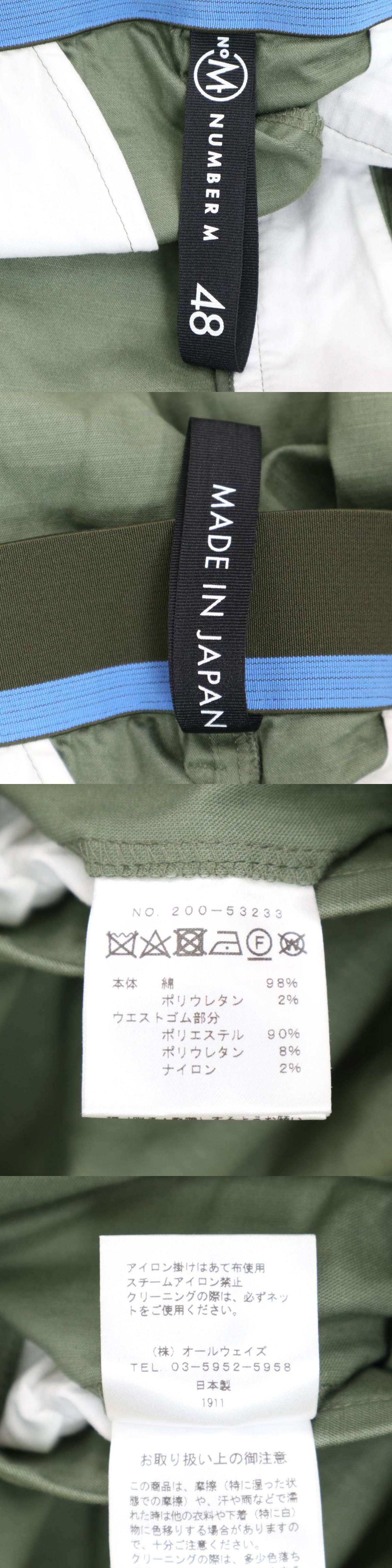 【美品】NUMBER M ナンバーエム 200-53233 通年★ ミリタリー イージー カーゴ パンツ Sz.48 メンズ 日本製 收藏