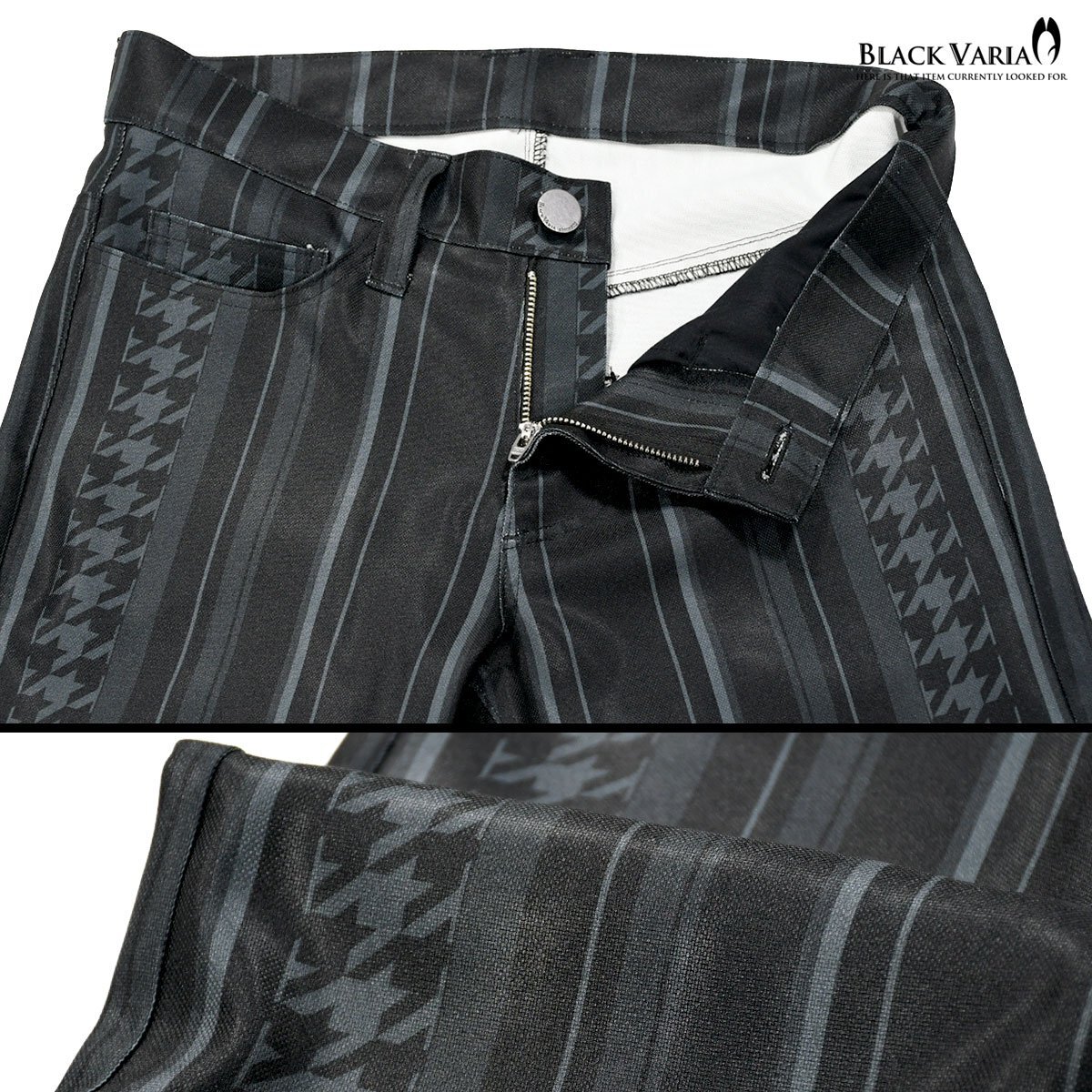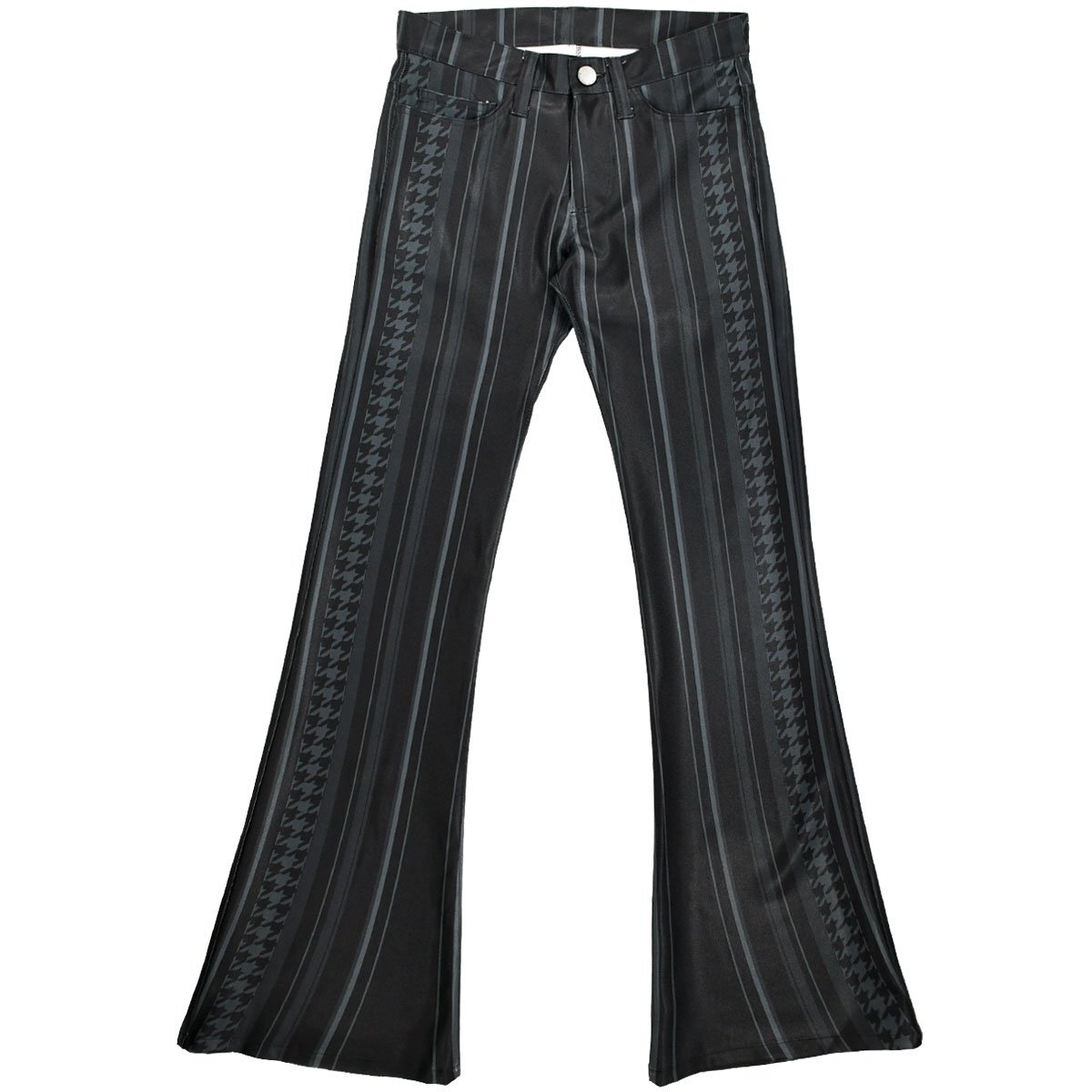 180092-bk BLACK VARIA 千鳥柄×ストライプ 裾広ベルボトム ストレッチフレアパンツ メンズ(ブラック黒) 32 ローライズ ステージ衣装 收藏