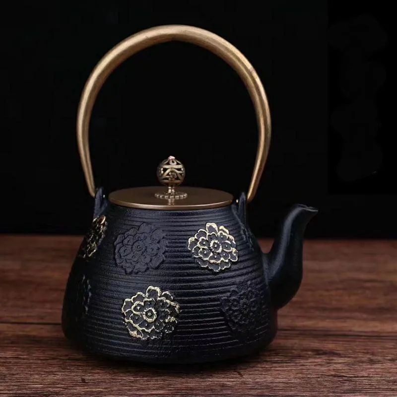 鉄急須 1.2L 大容量 鋳鉄ティーポット 急須 直火対応 和風 鉄器 鉄瓶 古風鉄瓶 鉄分補給 提梁壺 茶壺 水壷 煮茶壷 鉄びん 茶道具 收藏