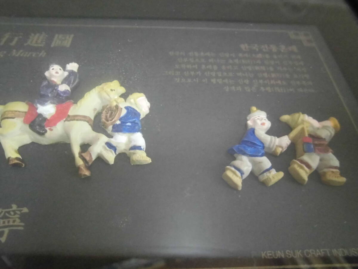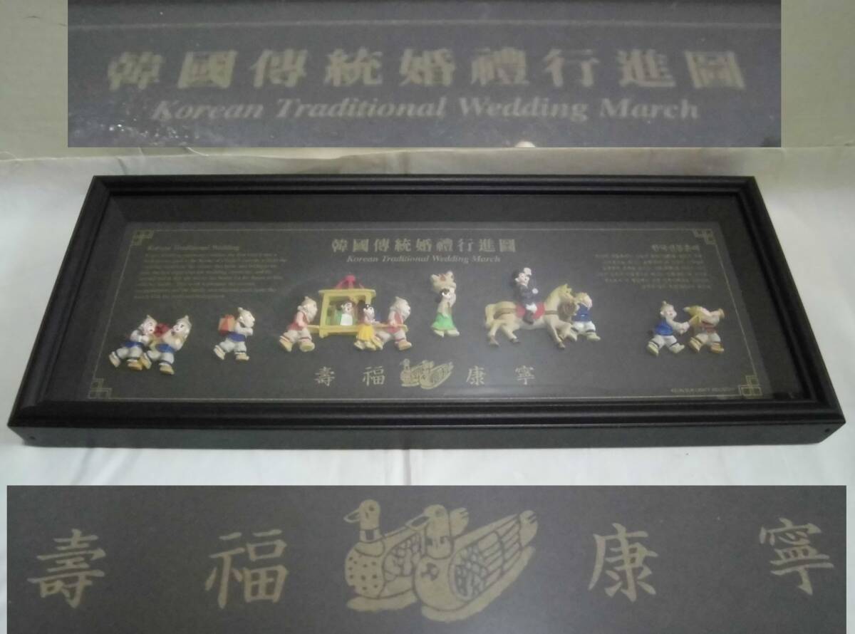 韓国傳統婚禮行進図 硝子 木製額縁入り 寿福 康寧 結婚式 壁掛け 飾り物 インテリア 工芸品 レトロ 收藏