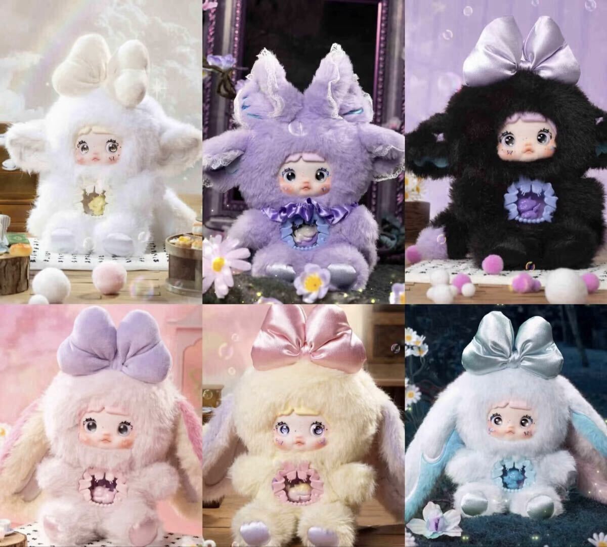 リボン付きの可愛いウサギ型ぬいぐるみ、複数の色展開あり。| 出价者 | 信用 | 价格 | 时间 |