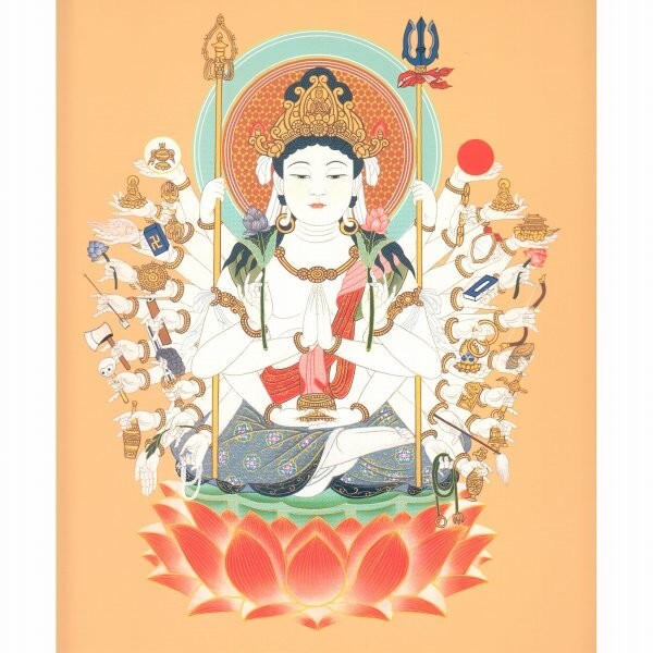 仏画 色紙額 「千手観音菩薩」 武藤純一/筆 印刷複製画 開運十二支御守り本尊 額入り 子年の守り本尊 開運グッズ ねずみ R3907 收藏