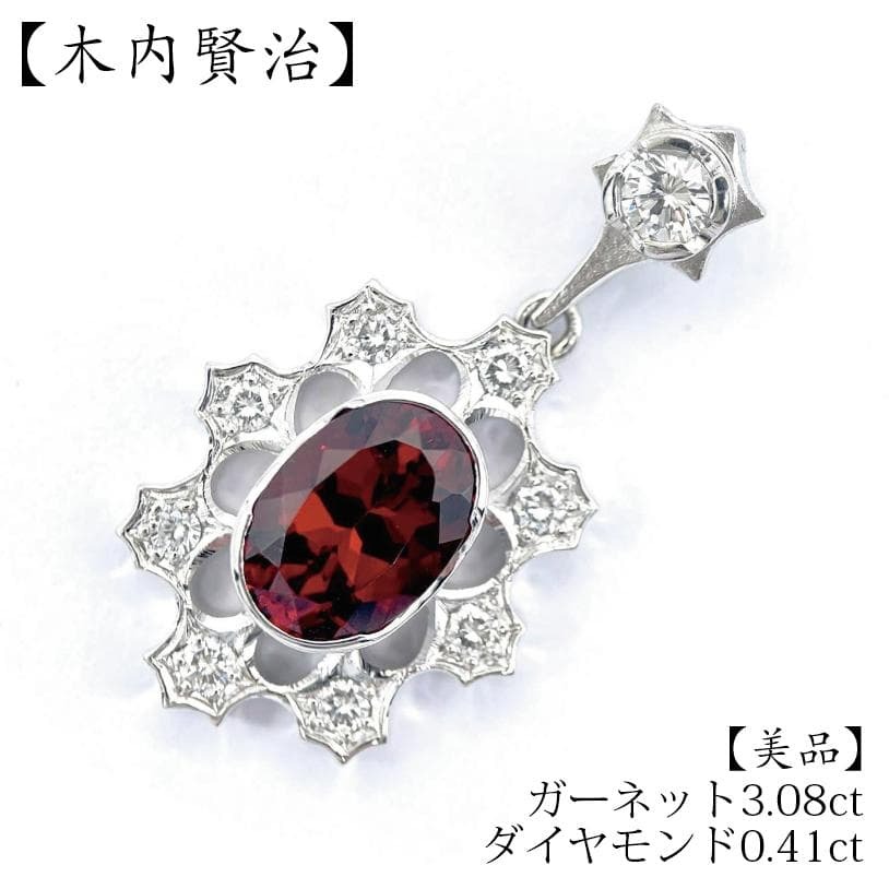 美品 木内賢治 ガーネット3.08ct ダイヤモンド0.41ct ペンダントトップ Pt900 プラチナ 白金 收藏