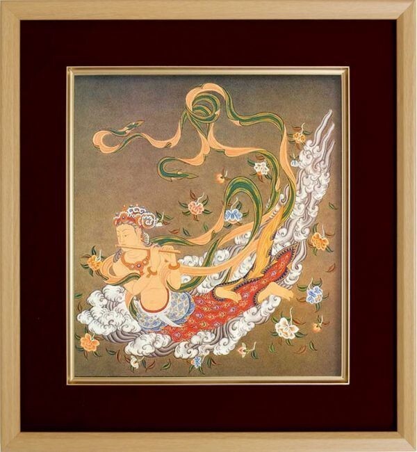 仏画 色紙額「飛天」複製画 エンジ額 額29x32.5cm 仏間に 仏事の飾り 佛画 密教 仏教美術 天女 諸仏の周囲で舞い礼賛する天人【84008】 收藏