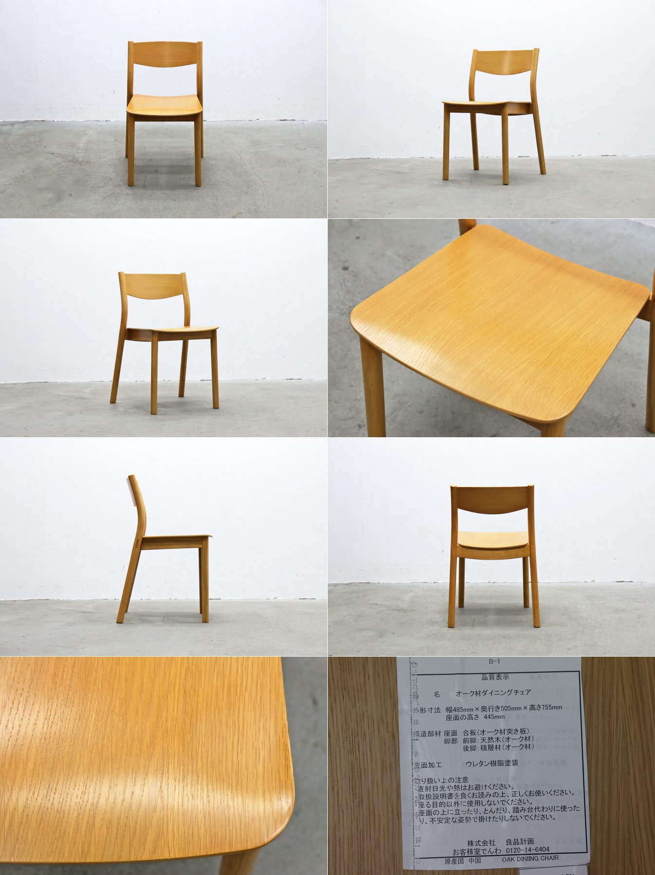 ◆在庫2脚 MUJI 無印良品 REAL FURNITURE リアルファニチャー オーク材 ダイニングチェア 椅子 木製 ナチュラル モダン 1脚 1/PJT14115◆ 收藏