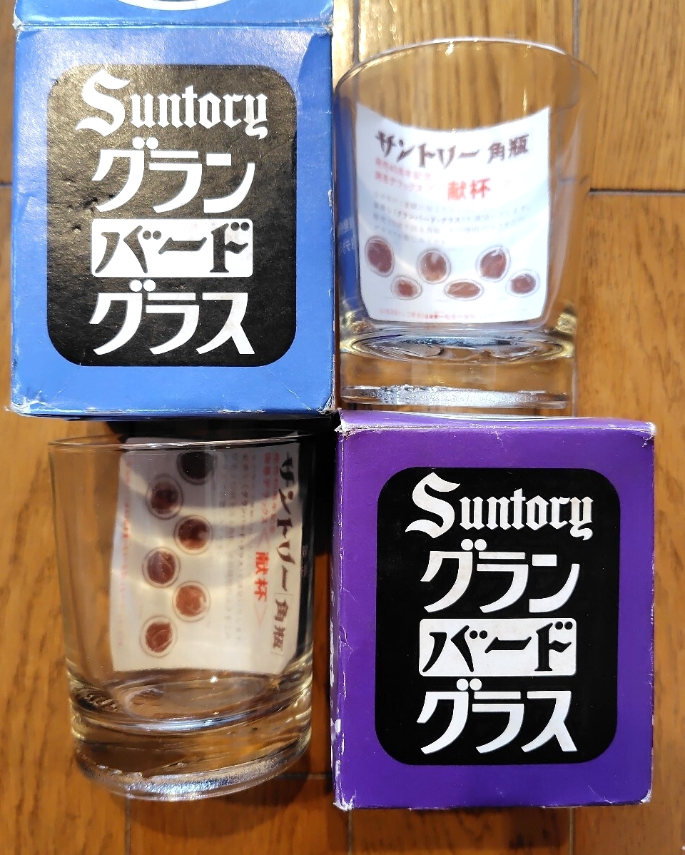 サントリー角瓶 ウイスキーロックグラス グランバード・グラス 非売品 復刻 当時物 ガラス ニワトリ ハト 鳥 2個セット まとめ売り 收藏
