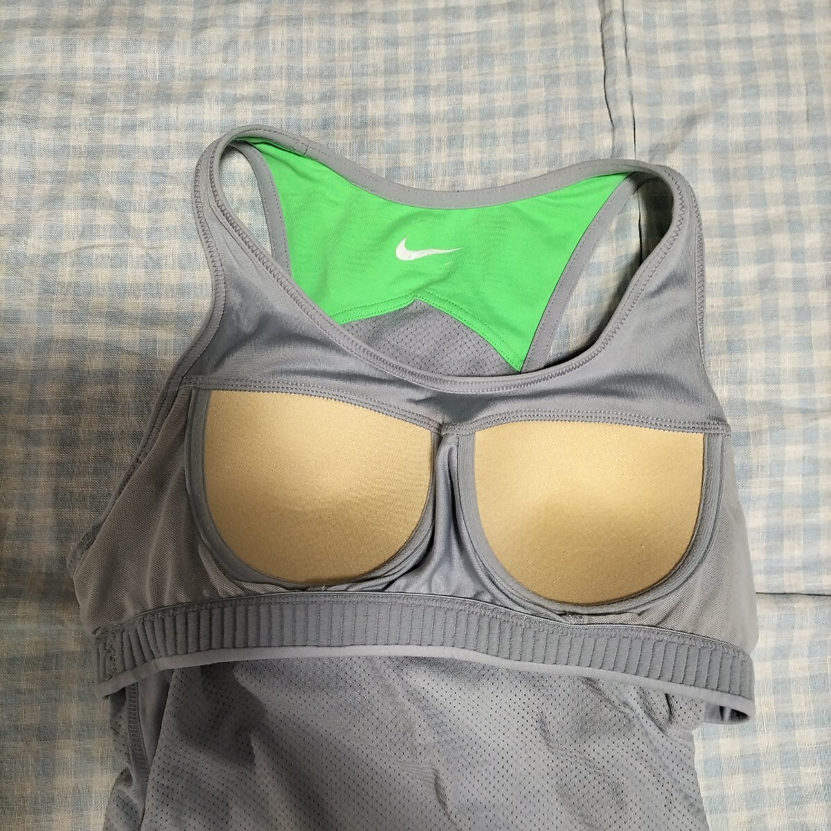プリントは少し剥げていますがその他の状態は良いです。色はうすグレーと蛍光黄緑 サイズMですが、スポーツ用なので、少しタイトです。素材は画像をご覧ください。平置き実寸:肩幅23cm胸幅39cmアンダーバスト32cm着丈63〜64cm