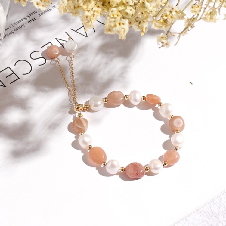 爆買 天然石 淡水パール ブレスレット レディース 結婚式 ハロウィン 新作 シンプル (サンストーン) 收藏