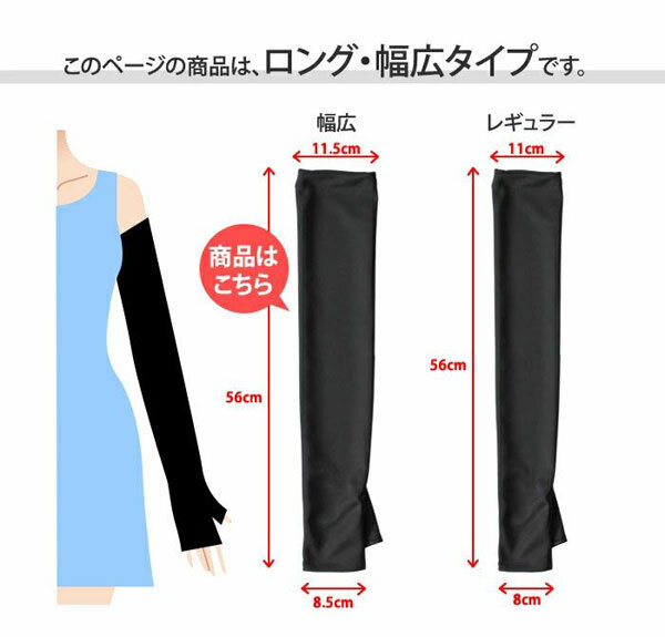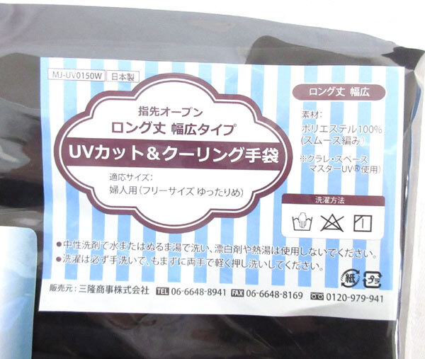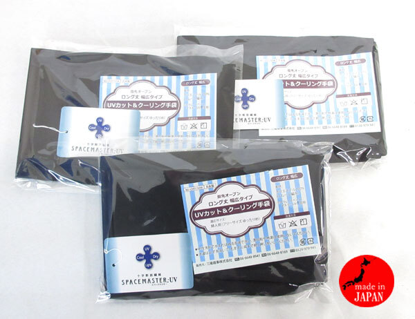 | ▼UVカット&クーリング手袋 指先オープン ロング丈 幅広タイプ 日本製(MJ-UV0150W) 3点 | |