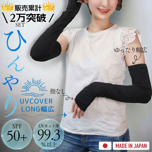 送料185円■ec006■▼UVカット&クーリング手袋 指先オープン ロング丈 幅広 日本製(MJ-UV0150W) 3点【シンオク】【クリックポスト発送】 收藏