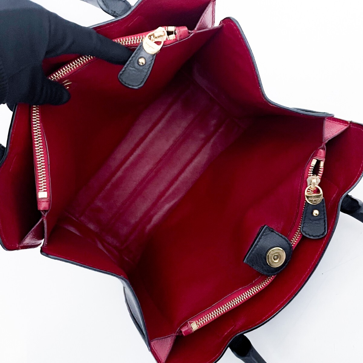 バッグの中の清掃には気をつかっておりますが、わずかな埃、髪の毛等全て取り切れていない場合もございますのでご了承をお願いいたします。