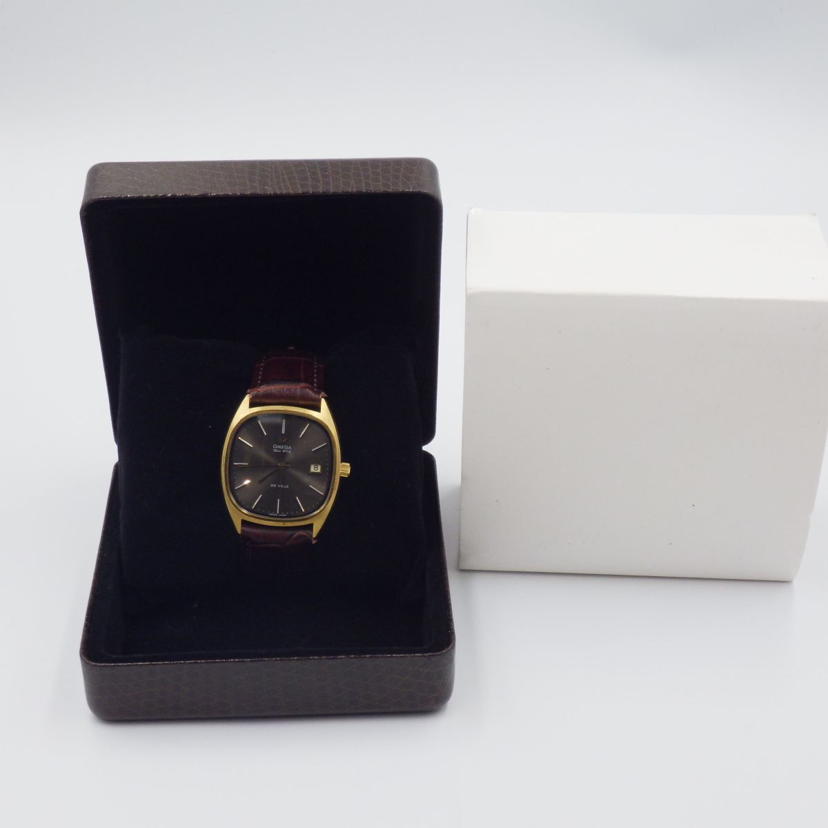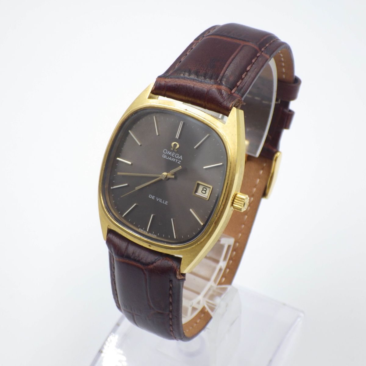 504167【1円スタート】OMEGA オメガ 稼動品 De Ville デビル チョコレート文字盤 デイト メンズ 時計 クォーツ ケース34mm 收藏