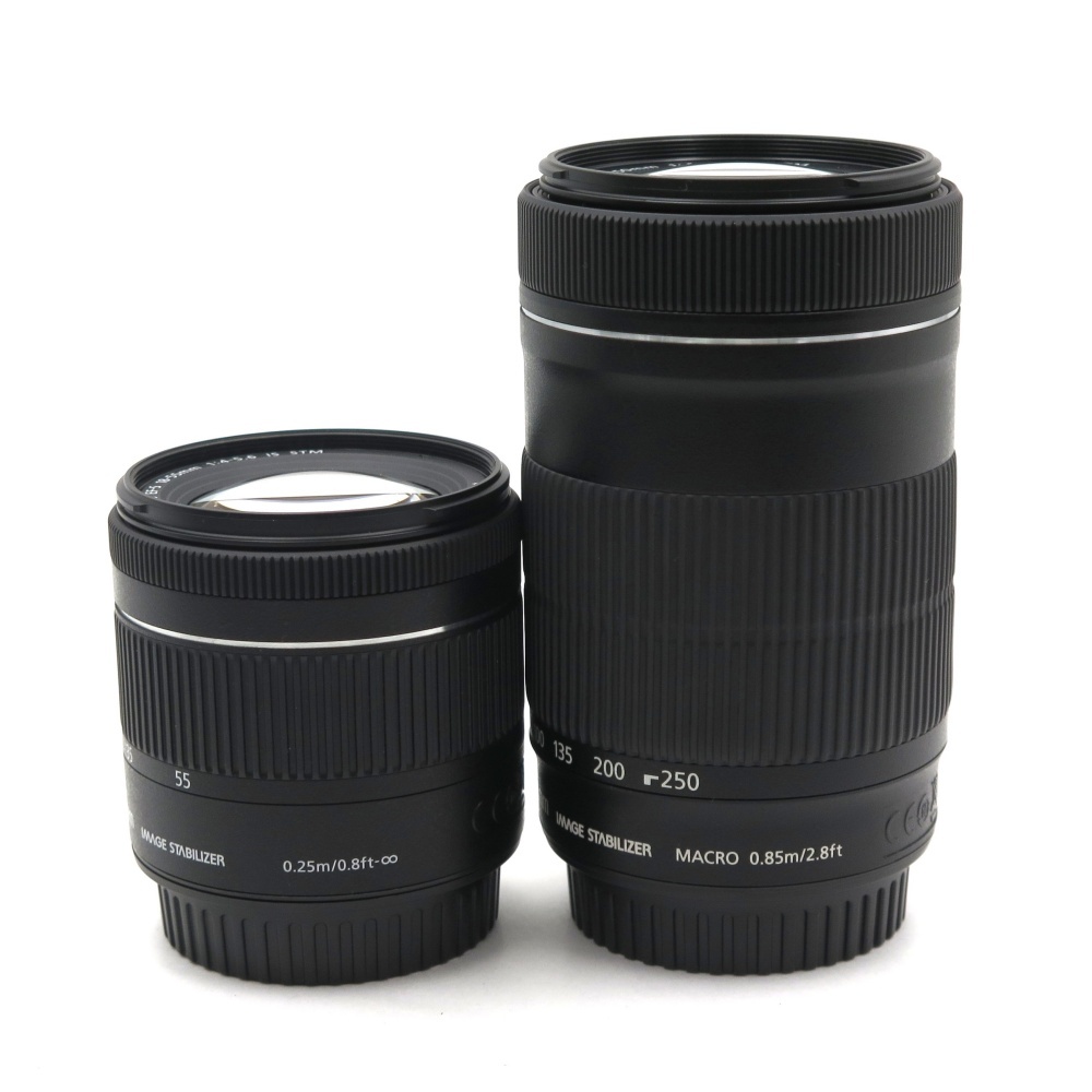 | レンズ詳細 | レンズサイズ1:EF-S 18-55mm F4-5.6 IS STM レンズサイズ2:EF-S 55-250mm F4.-5.6 IS STM |