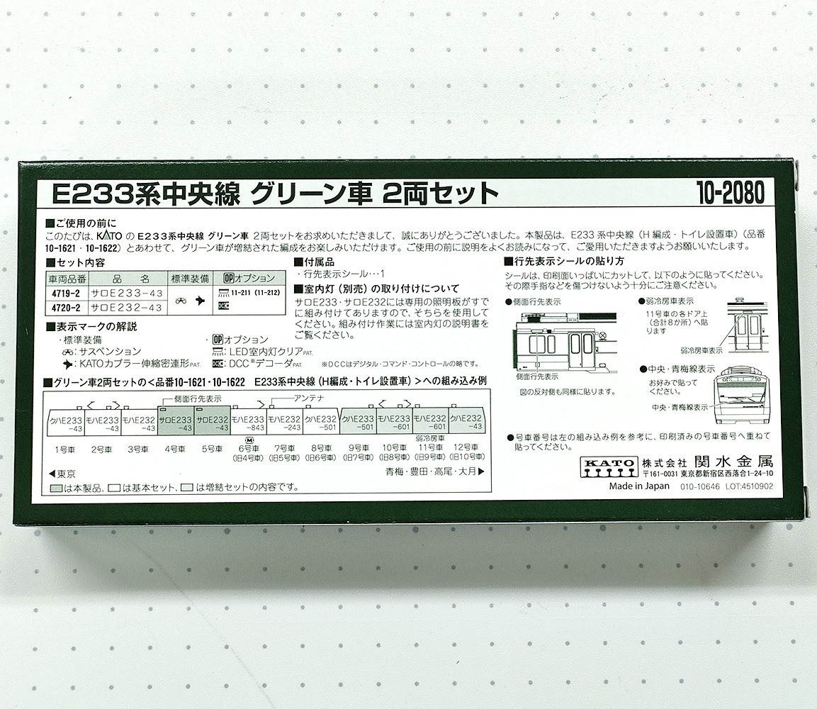 カトー 特別企画品 E233系中央線 グリーン車 2両セット 10-2080