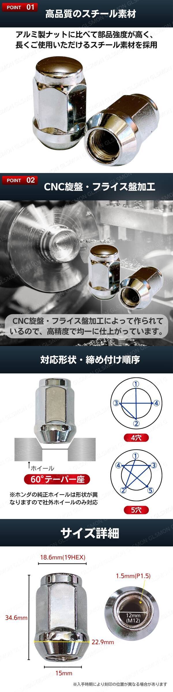 ホイールナット スチールナット M12 P1.5 袋 19HEX 35mm テーパー 20個 トヨタ マツダ ホンダ ダイハツ ミツビシ いすゞ クロム ボルト 收藏