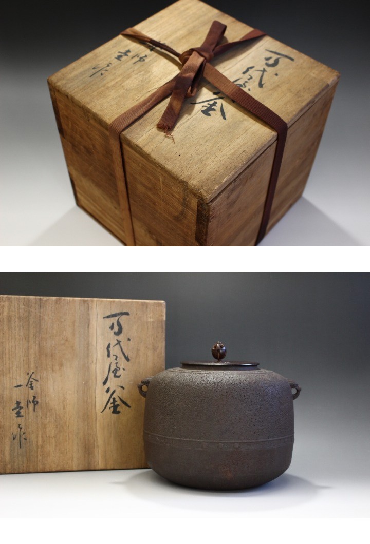 f542 技工名品 最高級 重要無形文化財 名人 角谷一圭 萬代屋釜 共箱 茶釜 湯沸し 風炉 茶道具 本物保証 收藏