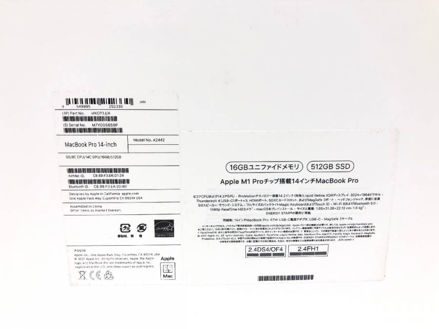 充放電0回 極美品 Apple アップル MacBook Pro 14インチ 2021 ノートPC M1 Pro 8コアCPU 14コアGPU 16GB SSD512GB MKGP3J/A Y11060MA 收藏