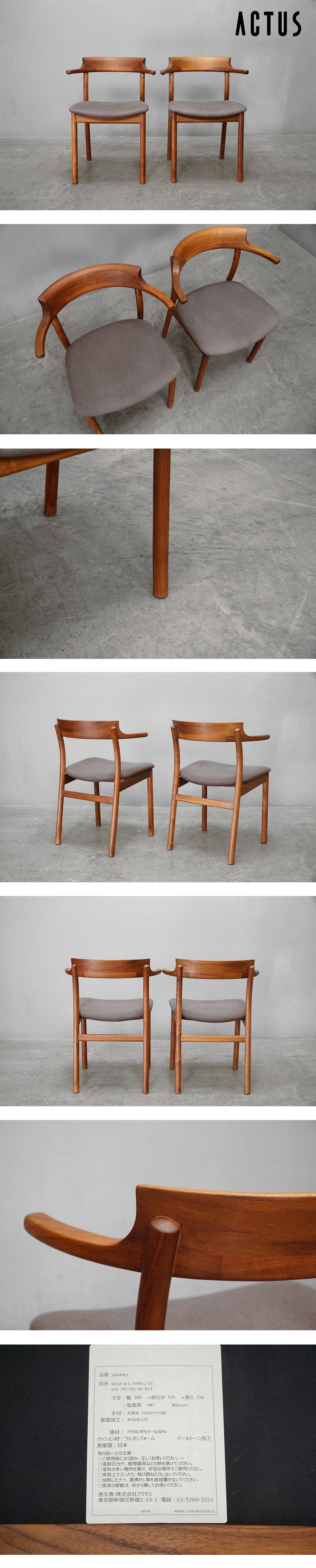 極美品 ACTUS(アクタス) SOUP (スープ) アームチェア タイプC ウォールナット 2脚セット ダイニングチェア 13.8万041127 收藏