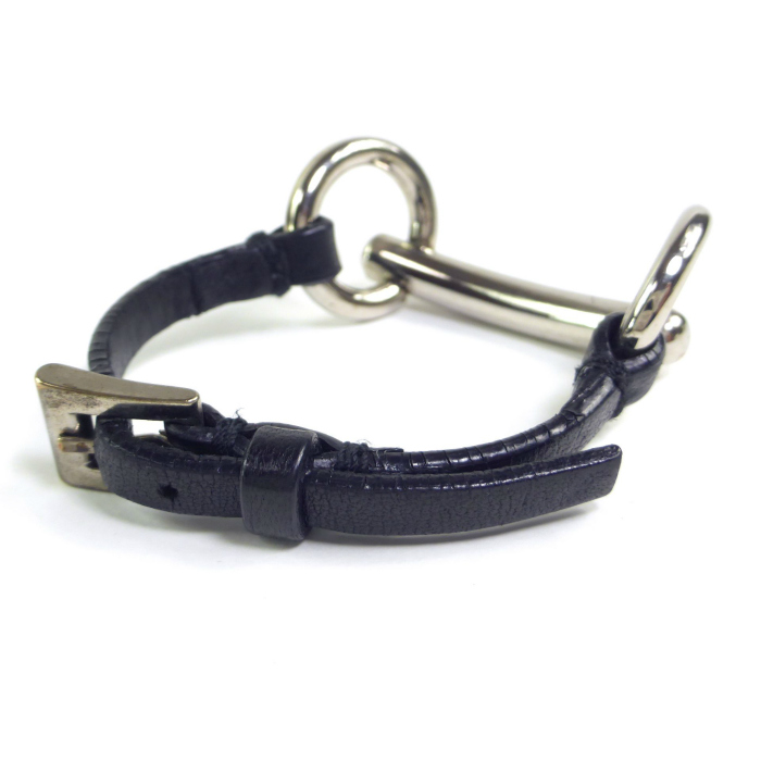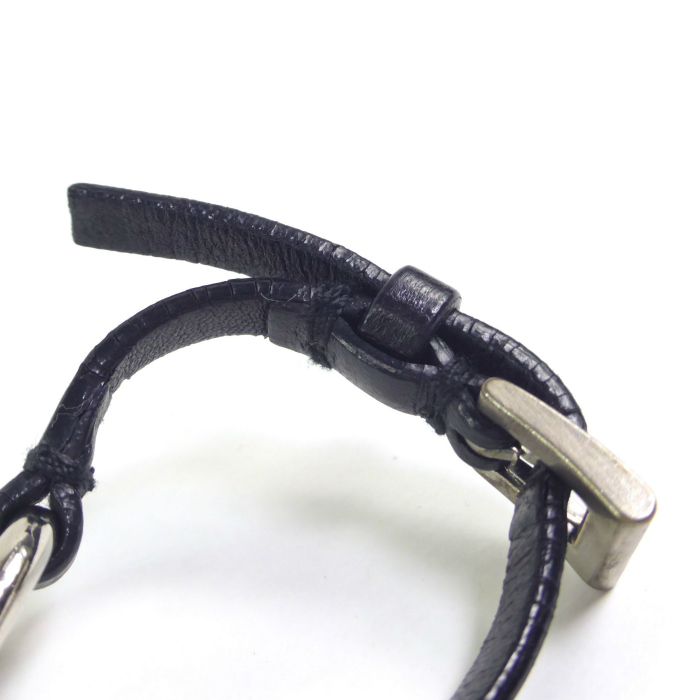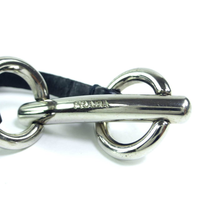 | プラダ(PRADA) ホースビット レザーベルト ブレスレット Mサイズ 1AJ165 シルバー×ブラック ヴィンテージ(中古) |
