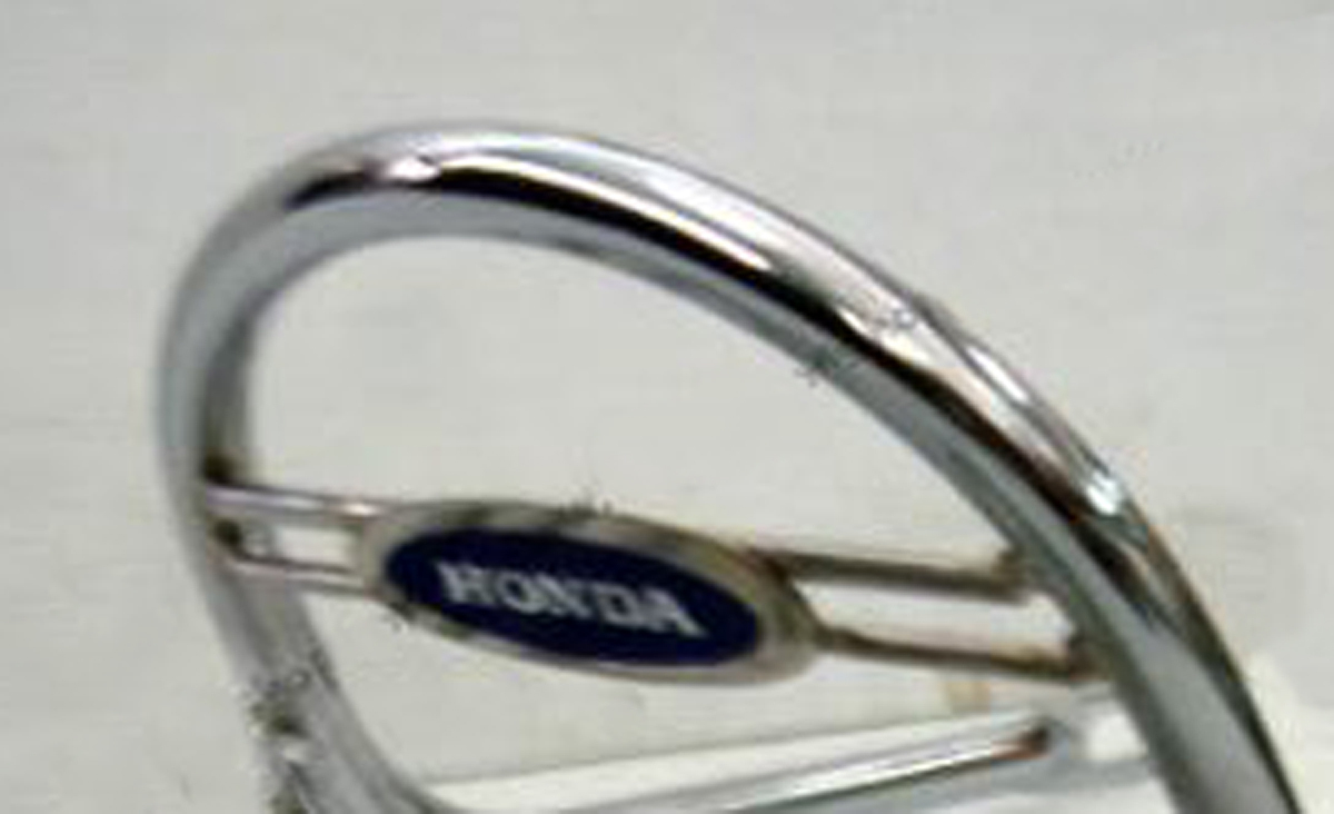 旧車マニア デッドストック品:HONDA ホンダ シャリー 専用 Chaly グラブバー Type-A HONDAロゴ入 スティール製 クロムメッキ