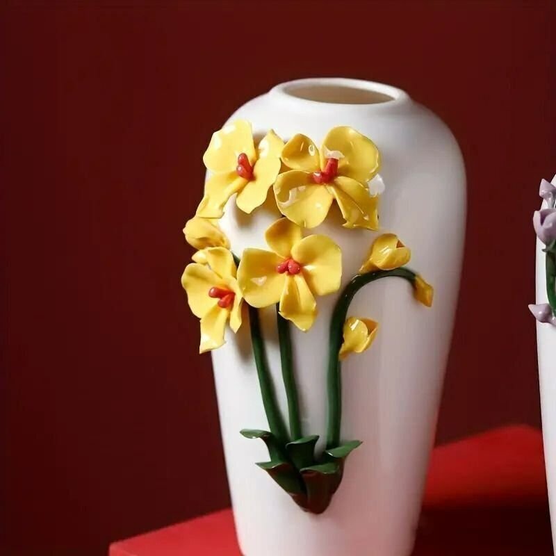 シックな手作りセラミック花瓶は、5タイプ展開でお楽しみいただける洗練されたデザインが特長の素敵なアイテムです。3Dの花があしらわれたこの花瓶は、上品さと個性を兼ね備えた存在感を持ち、お部屋のインテリアにぴったりなアクセントを加えます。手作りならではの温かみと、セラミックの質感が魅力的です。