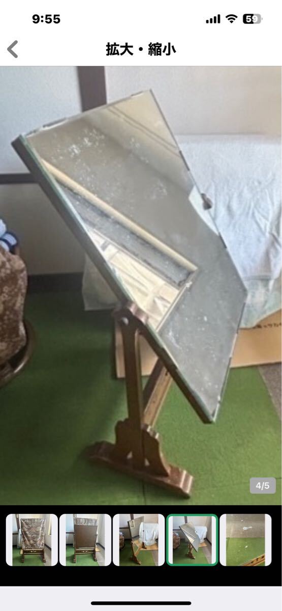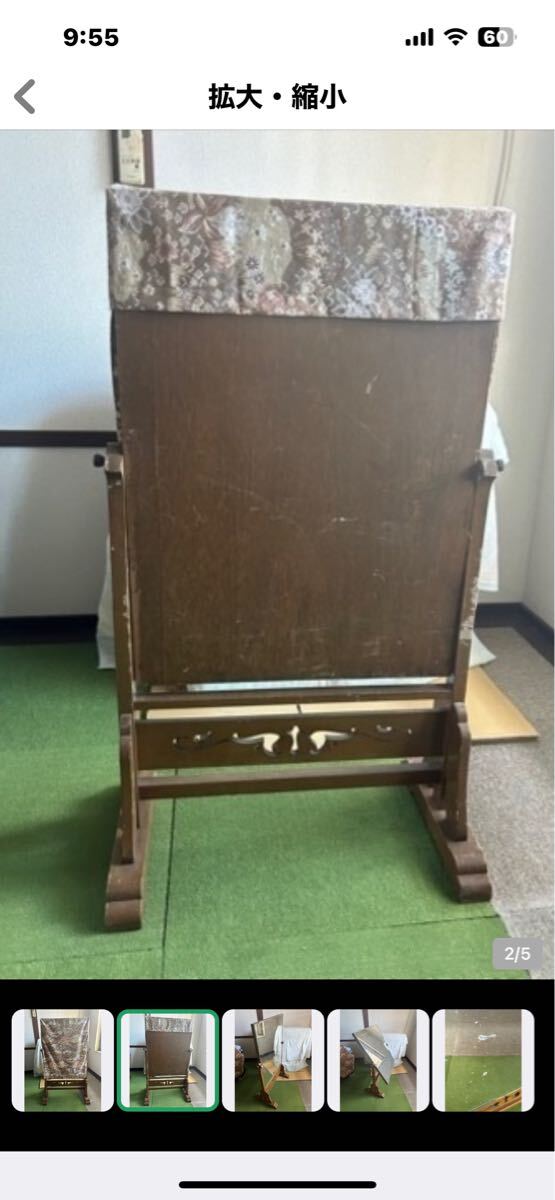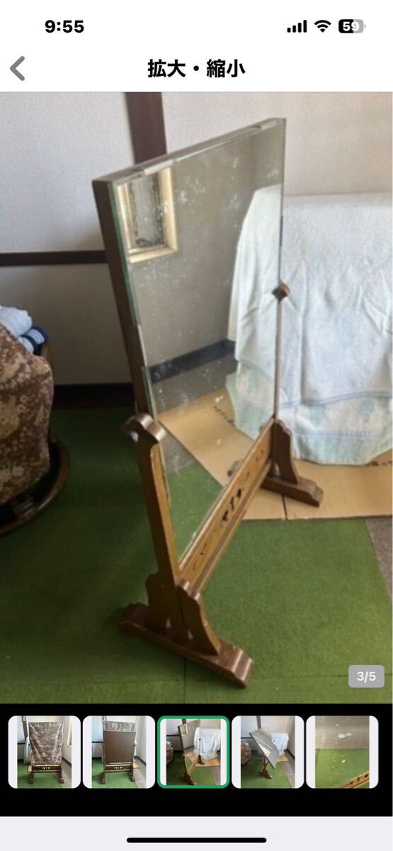 回転式 鏡 姿見 木製鏡 昭和 レトロ 布製カバー付き スタンドミラー 和装 アンティーク インテリア 收藏