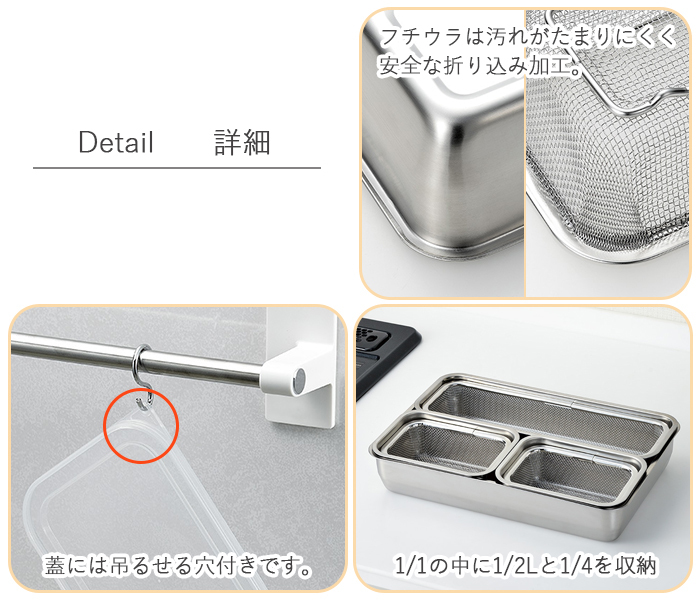 保存に便利な蓋付きで、重ねて収納ができます。
