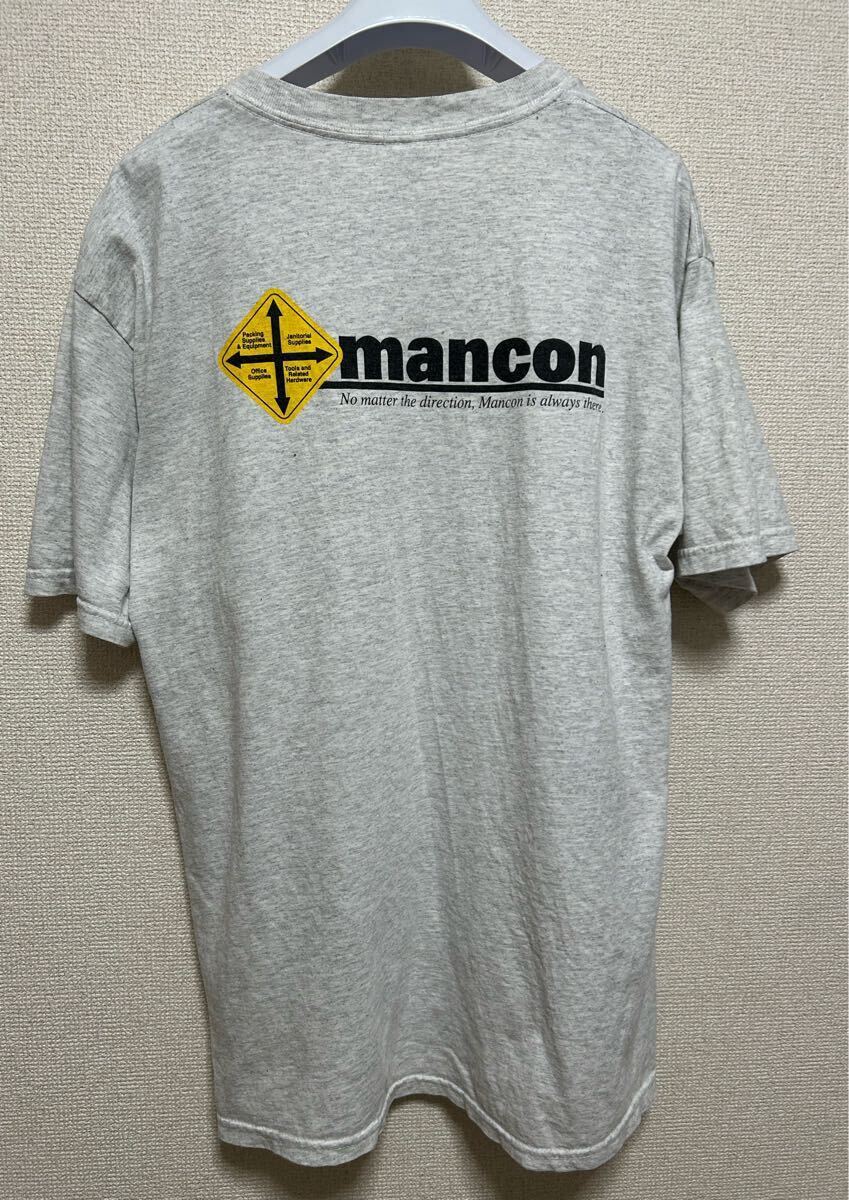 GILDAN mancon 企業 Tシャツ ポケT ポケット L 半袖 グレー Tee プリントTシャツ /USA古着 /海軍 收藏