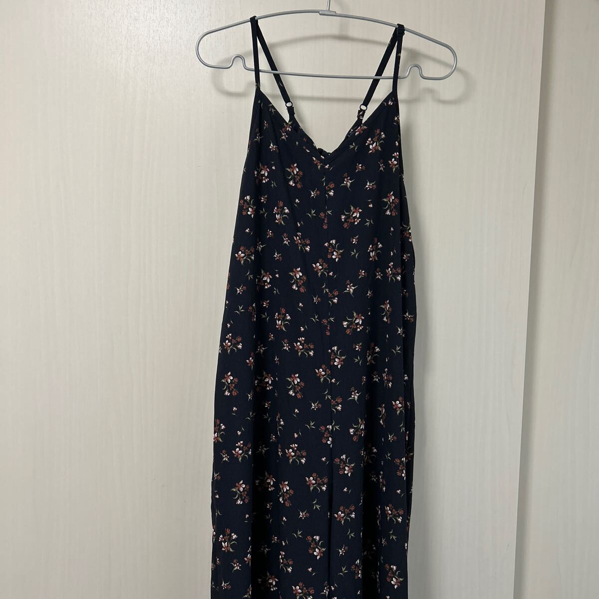 ★COLZAブラック系花柄プリントオールインワンL