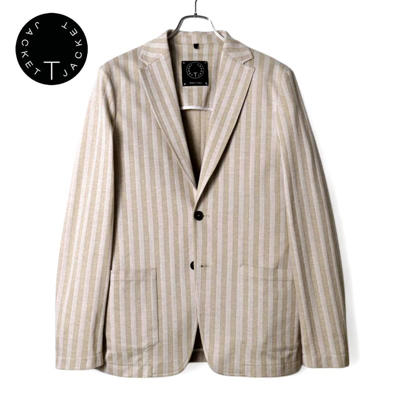 T-JACKET(ティージャケット) / ストライプ柄コットンポリエステルリネンジャージー2Bジャケット(51G419JR) [tjk2510152-M] 收藏