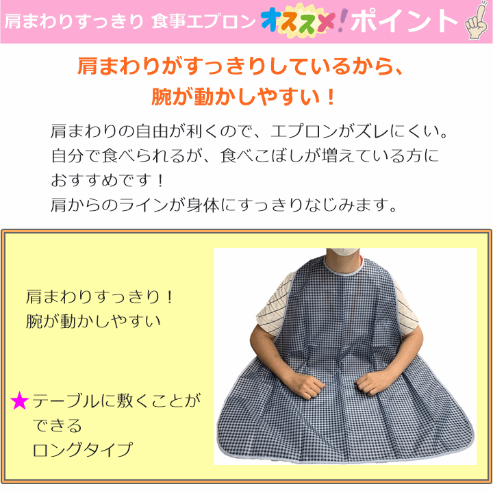 【平日15時まで即日出荷】肩まわりすっきり 食事エプロン 2枚セット【介護用エプロン 食事用エプロン 介護用前掛け スタイ 食べこぼし】 收藏