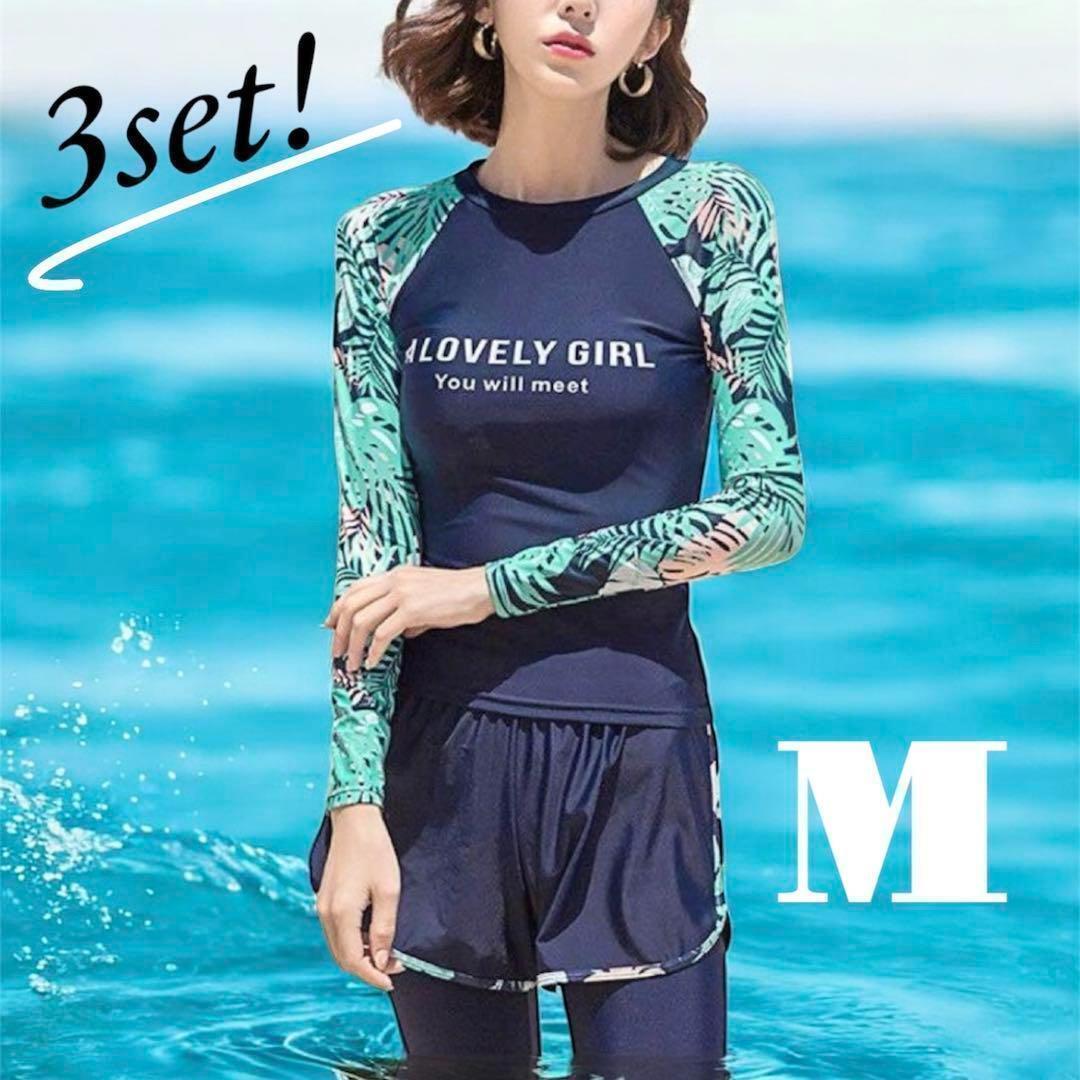 M ボタニカルラッシュガード 3点セット 長袖 水着 日除け UV 体型カバー サーフィン旅行海プール夏休み ママ レギンス 收藏