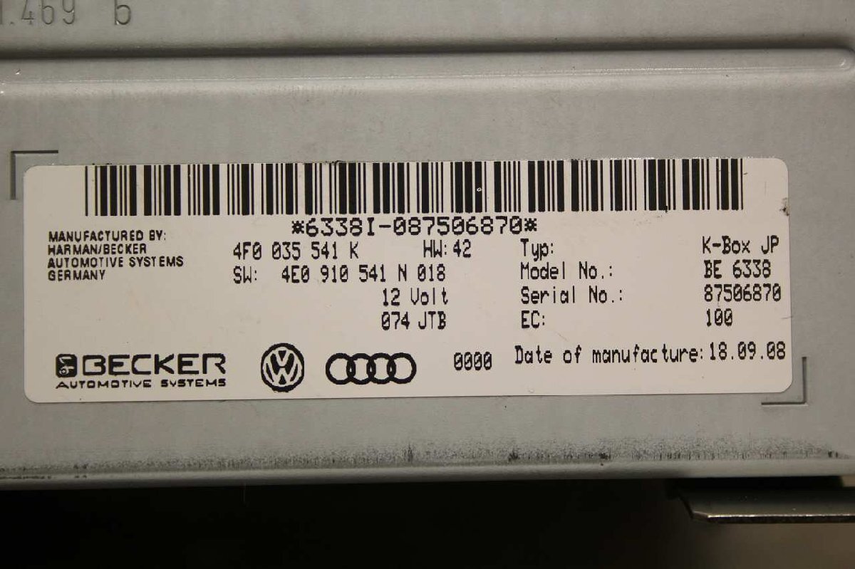 アウディ A4 アバント 右H (8KCDH) 純正 ラジオチューナー BE 6338 4F0 035 541 K Audi BECKER 破損無 動作保証 p049590 收藏
