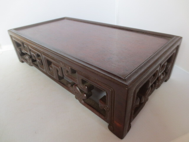 【艸】 R7/10/6-1 唐木花台 香炉卓 天葡萄杢 盆栽水石花台 幅約38センチ 中国古玩 2oct1 收藏