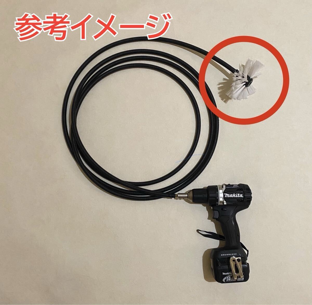 ①ナイロンブラシ(本商品)、ソケット付フレキシブルシャフト(別売)、電動ドライバー(別売)を準備します。