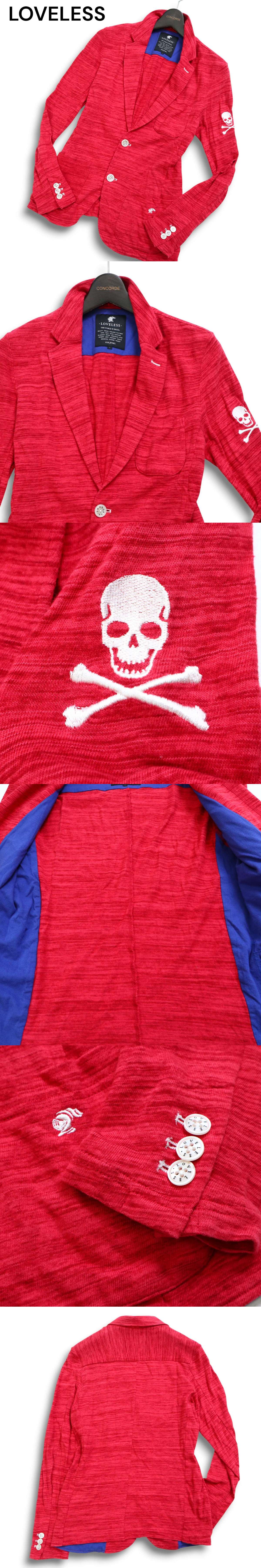 LOVELESS ラブレス 通年 スカル刺繍★ メランジ 2B アンコン テーラード ジャケット Sz.1 メンズ 赤系 收藏