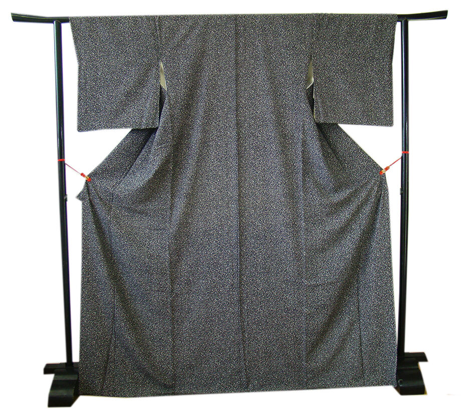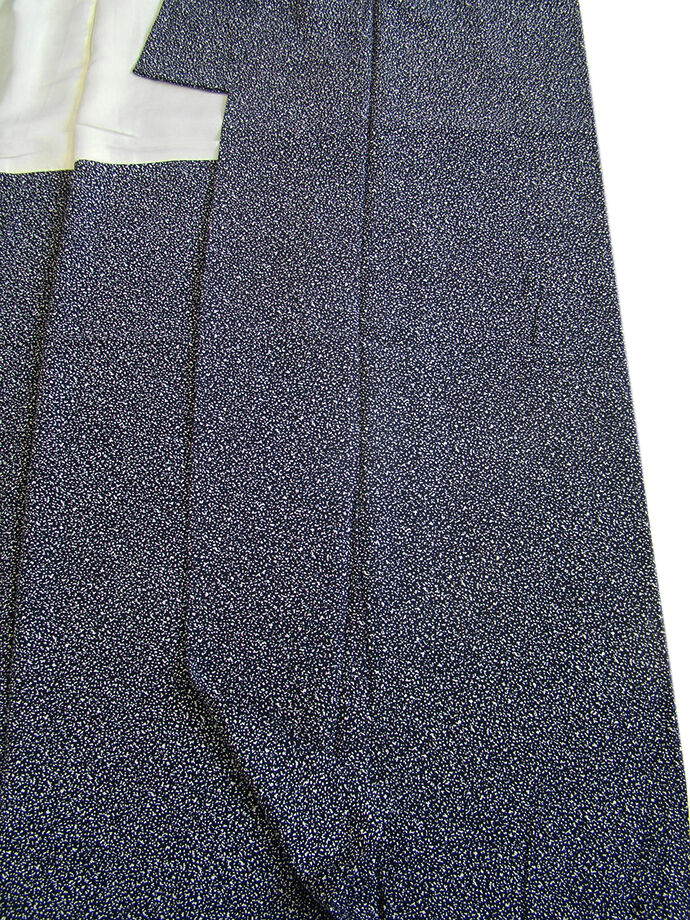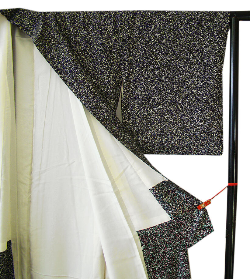 商品説明 | こちらのお品は「袷」ですので10月から5月までお召頂ければと思います。 とてもしなやかなさらりとした手触りの着心地良い重めの滑らかな極上ちりめん地の生地、 黒色地に白色のたたき染柄、 共八掛(正絹)、幅広い年代の方にお召頂けます。 |