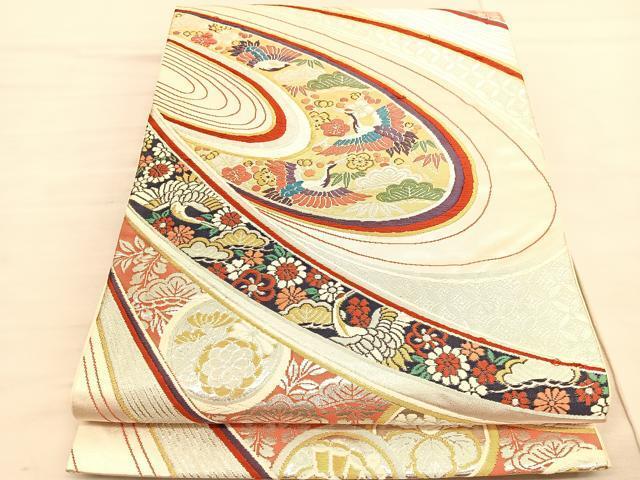 平和屋着物◎六通柄袋帯 唐織 華翔金彩錦 飛鶴松竹梅 創美彩箔 正絹 逸品 BAAV3714hv 收藏