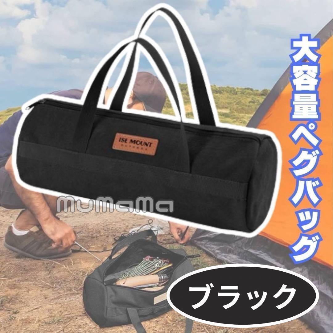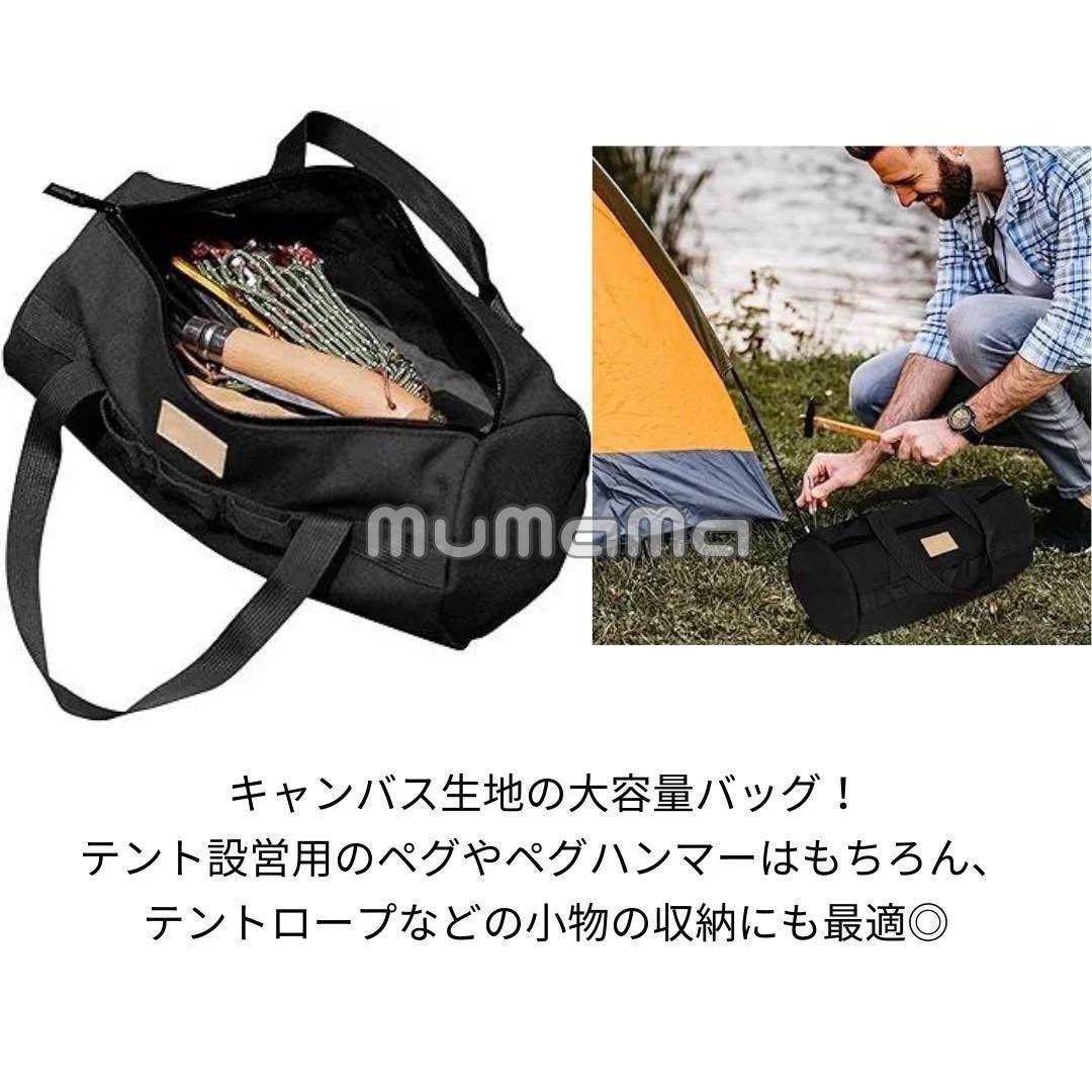 ペグバッグ 大容量 ブラック カバン 丈夫 キャンプ用品 テント道具入れ 帆布 黒 收藏