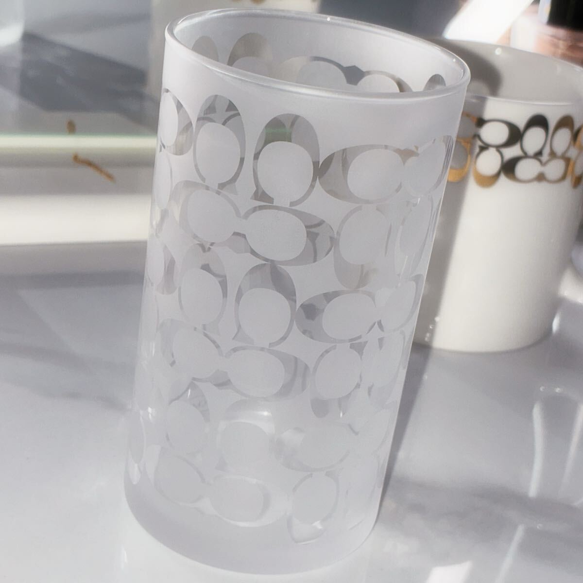 コーチCOACH グラス&マグカップのセット ティーカップ 食器 モノグラム柄 未使用品 ソーサー ゴールドモノグラム 收藏