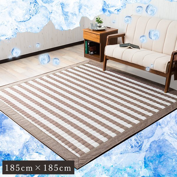 ラグ ラグマット ひんやり 接触冷感ラグ 185×185cm 2畳 キルト加工 洗える ひんやりラグ ボーダー柄 正方形 收藏