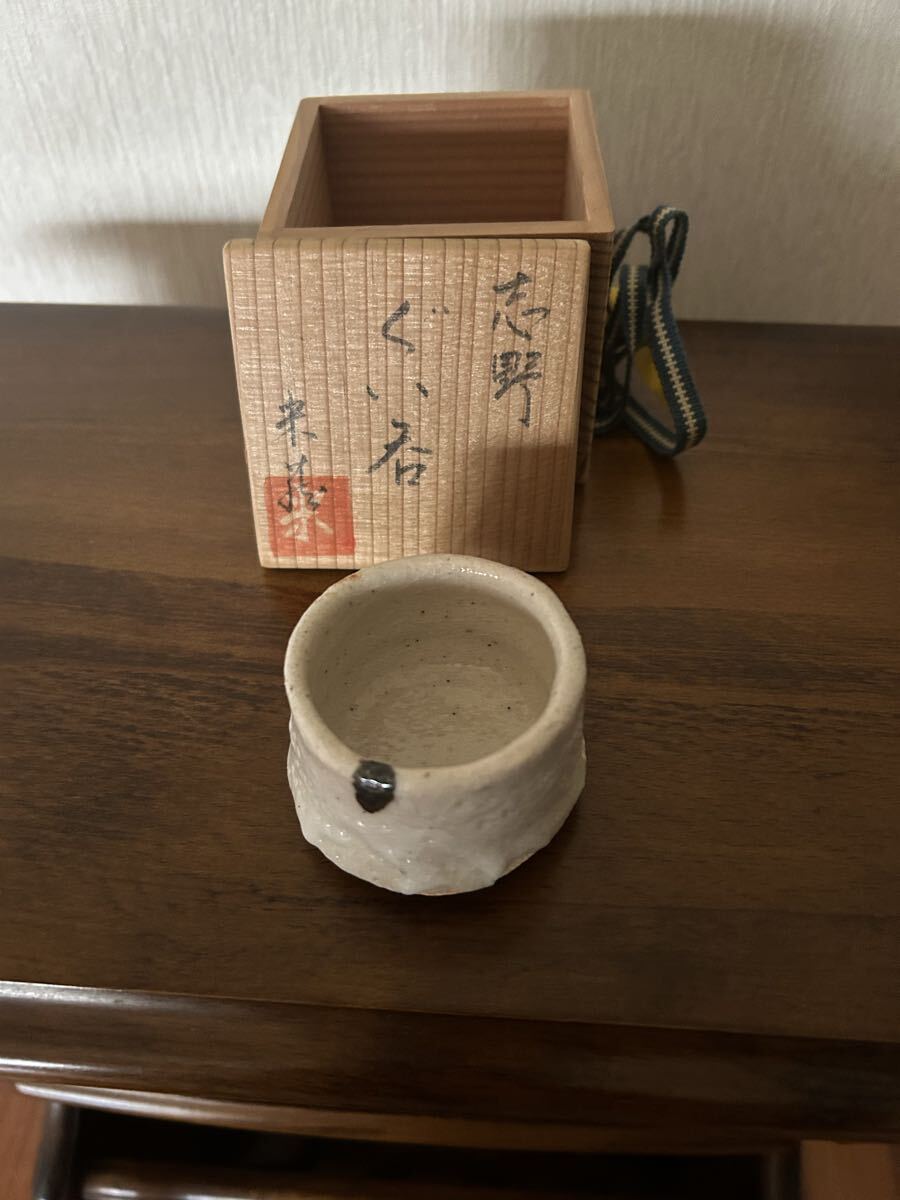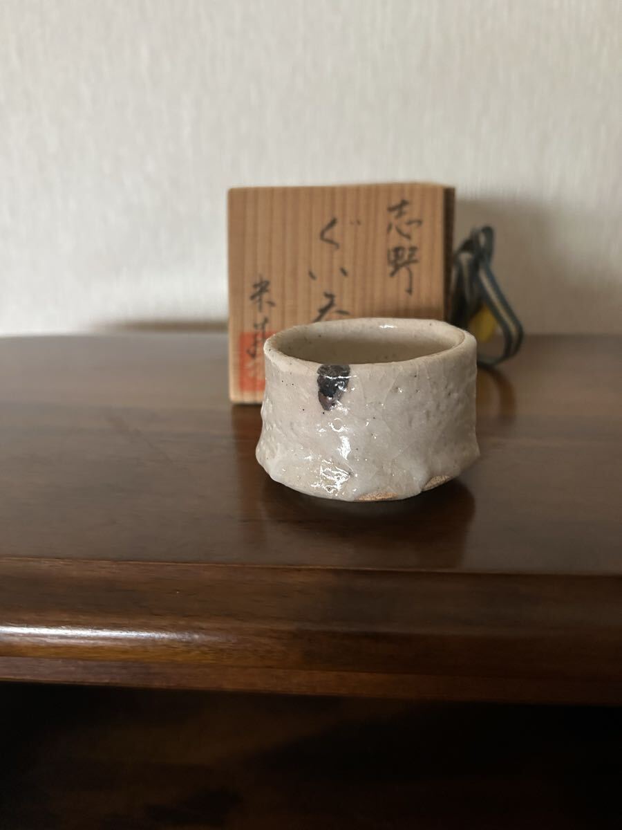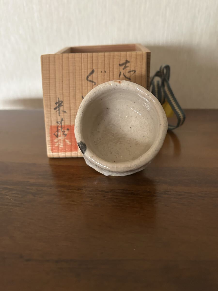 【高級骨董品】志野焼き お猪口 白色 箱付き アンティーク インテリア小物 置物 茶碗 茶器 ぐい呑み 酒盃 酒器 陶芸 茶道具 收藏