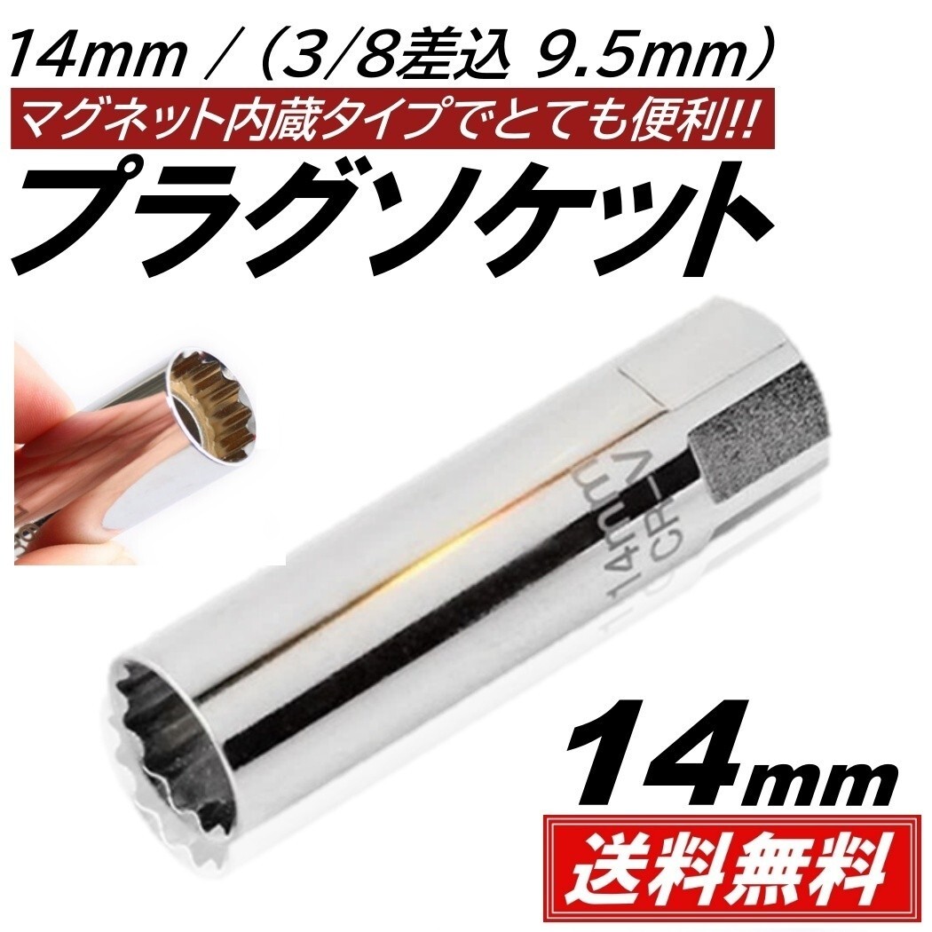 14mm プラグレンチ スパークプラグレンチ マグネット内蔵 プラグレンチ 12角 3/8 9.5mm 差込角 プラグソケット ソケット 收藏