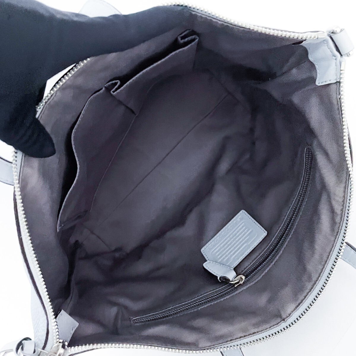 バッグの中の清掃には気をつかっておりますが、わずかな埃、髪の毛等全て取り切れていない場合もございますのでご了承をお願いいたします。