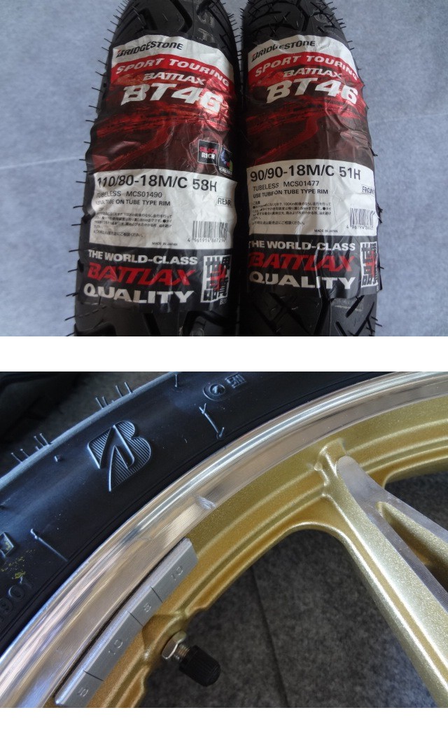 ♪未使用 GS400 キャスト ホイール ゴールド セブン&BSタイヤ新品前後セット / GS400 GS400L GT380 GSX400E GSX400F 收藏